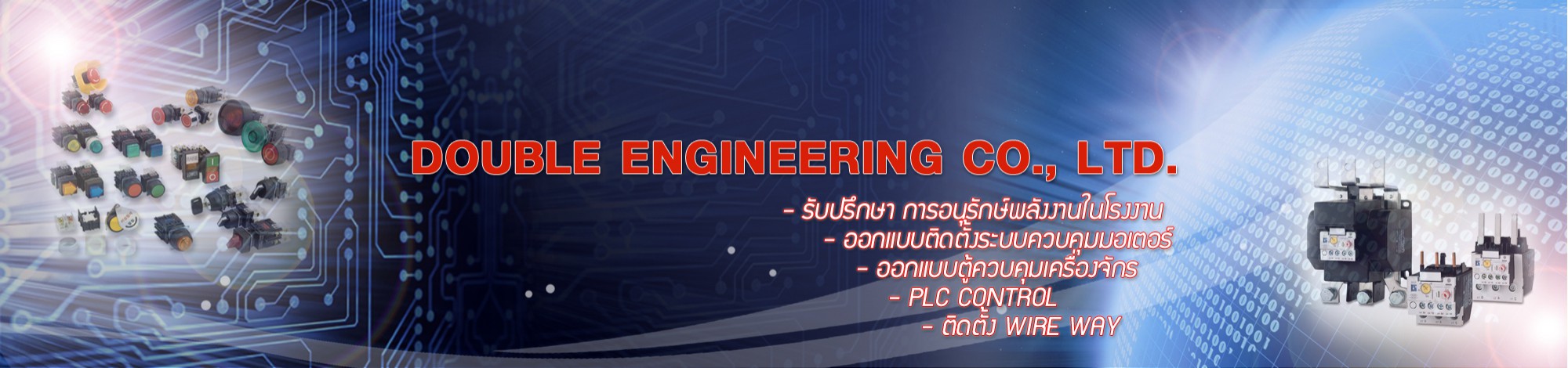 บริษัท ดับเบิ้ลเอ็นจิเนียริ่ง จำกัด DOUBLE ENGINEERING CO.,LTD ออกแบบและติดตั้งระบบไฟฟ้าในโรงงาน ระบบแสงสว่าง ชุด MDB MCB รับทำระบบควบคุมเครื่องจักรตามแบบที่ต้องการทั้งแบบ ON/OFF , PLC , SCADA ทั้งออกแบบและติดตั้ง รับงานปรับปรุงเครื่องจักร (Development) การยกเครื่อง (Overhaul) การเพิ่มประสิทธิภาพเครื่องจักร ( Efficiency) เป็นตัวแทนจำหน่ายอุปกรณ์ไฟฟ้าในโรงงานอุตสาหกรรม Touch Screen , PLC ,SERVO , Motor , Pump อุปกรณ์ด้านแสงสว่าง สายไฟฟ้า สายControl สายสัญญาณ ,พัดลม